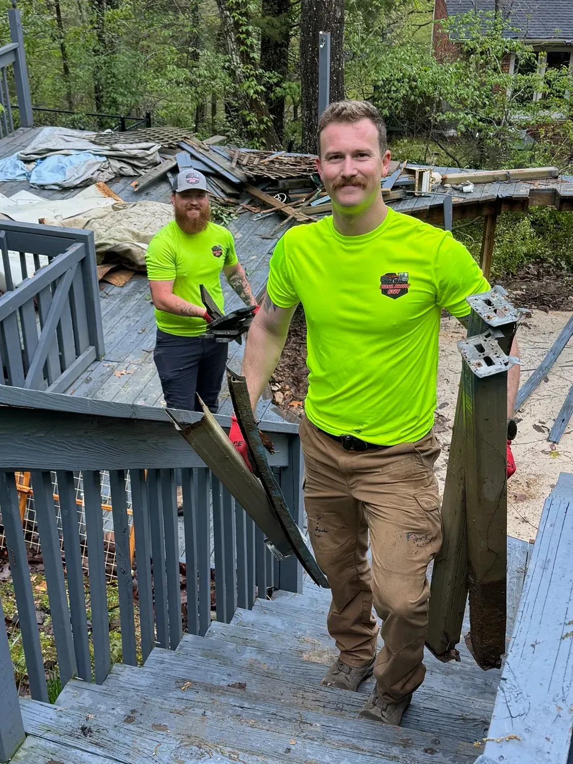 Yes, we try to recycle deck materials whenever possible. Items like metal railings, old deck boards, and wood in usable shape can often go to local recycling centers. We’ll sort what we can on-site and make the proper drop-offs. Recycling helps reduce waste and save on landfill costs.